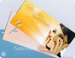 Klicken Sie einfach auf den Kosmetik - Gutschein und laden diesen als PDF-Dokument runter. Anschließend öffnen, ausdrucken und zur Behandlung mitbringen.